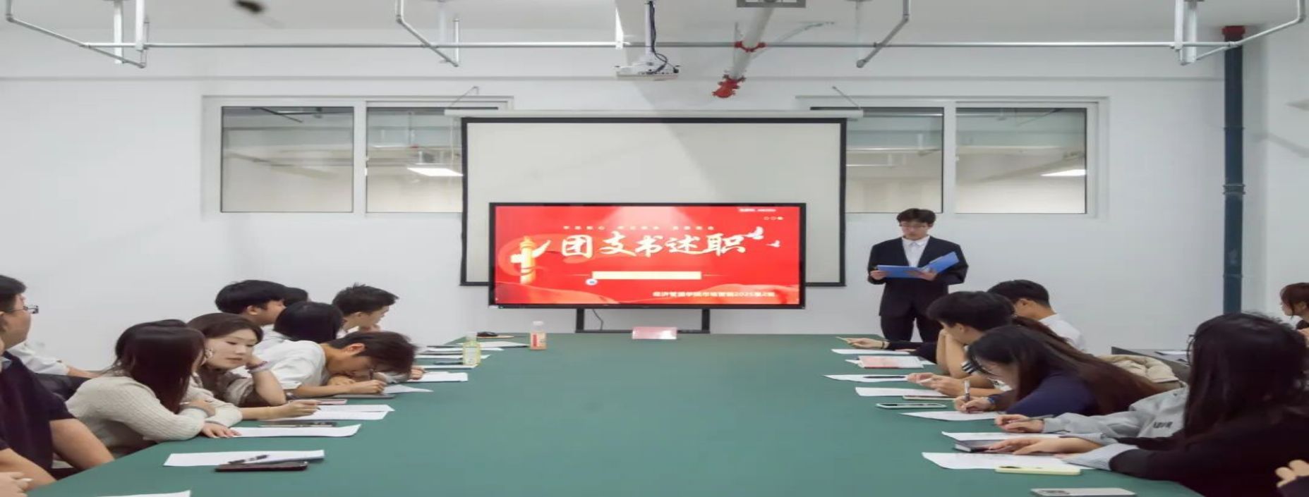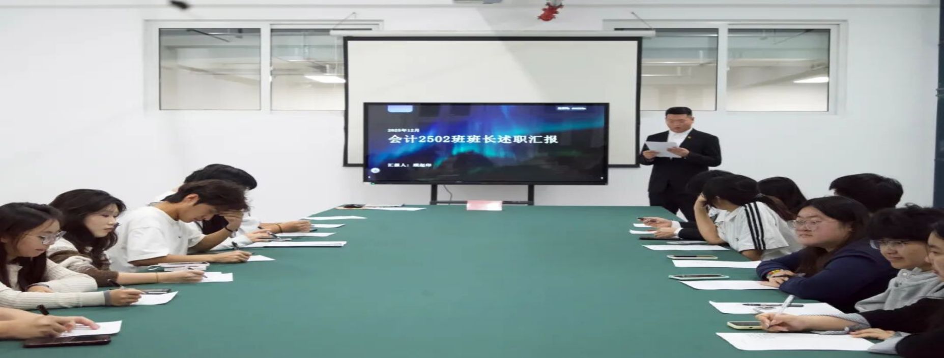 为总结班级建设成效,强化基层学生骨干队伍建设,搭建互学互鉴的交流平台,12月22日下午,经济管理学院于九思楼816会议室召开2025级班长支书述职大会。学院团委书记王宇晨老师,各班助理班主任、班长支书及班委代表参会。