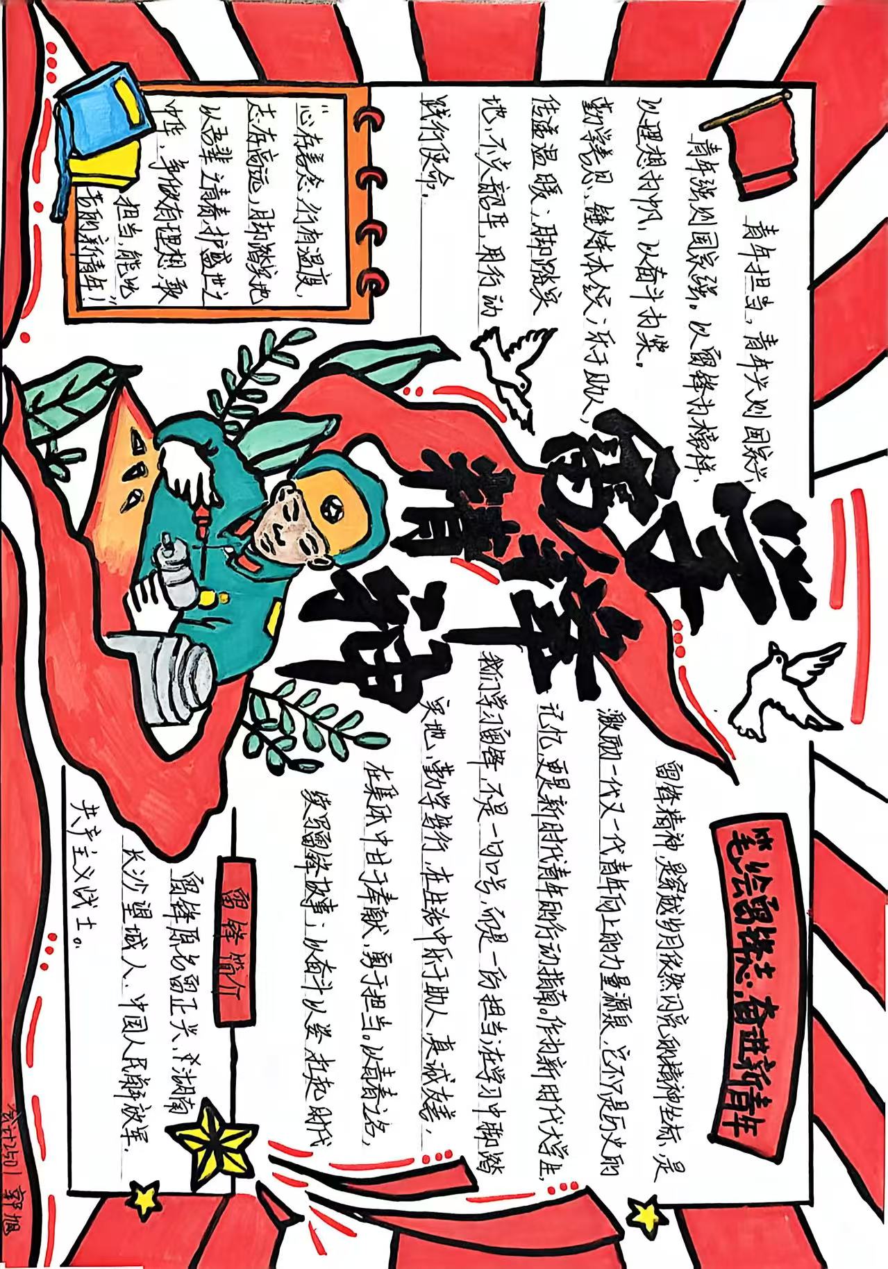 学院以手抄报创作为载体,鼓励同学们以笔为墨、以画为媒,围绕雷锋事迹、精神内涵、青春奉献等主题精心构思版面,将对雷锋精神的理解与赤诚倾注于笔墨之中。一张张主题鲜明、内容饱满的手抄报,既是浸润心灵的思想课堂,也是展示经管学子风貌的鲜活窗口,让雷锋精神在图文交融的创作中入脑入心、落地生根。