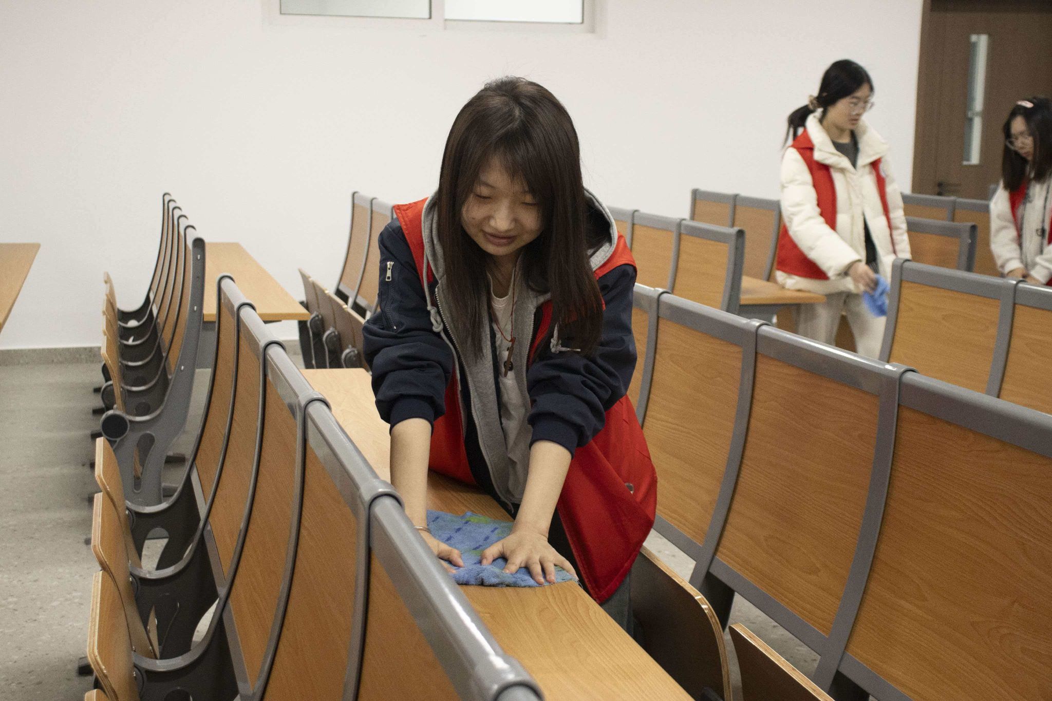 学院组织志愿者走进教学楼,开展桌椅整理专项志愿服务活动。同学们分工擦拭桌面扶手、摆正歪斜桌椅、清理地面杂物,用实实在在的劳动将教室收拾得干净整洁。大家在亲身实践中,切实感悟到维护公共环境的责任,也以最朴实的行动践行了“从小事做起、为他人服务”的雷锋精神,让文明习惯在校园里看得见、摸得着。