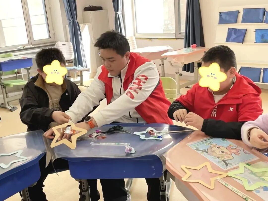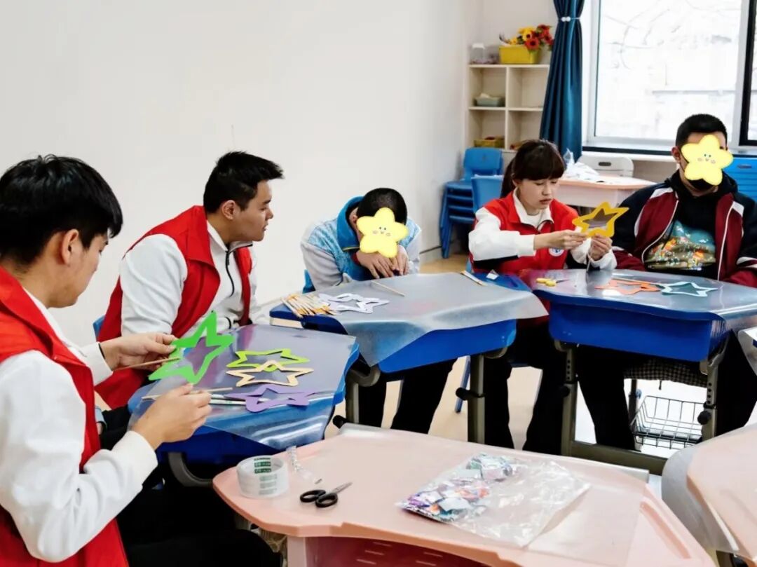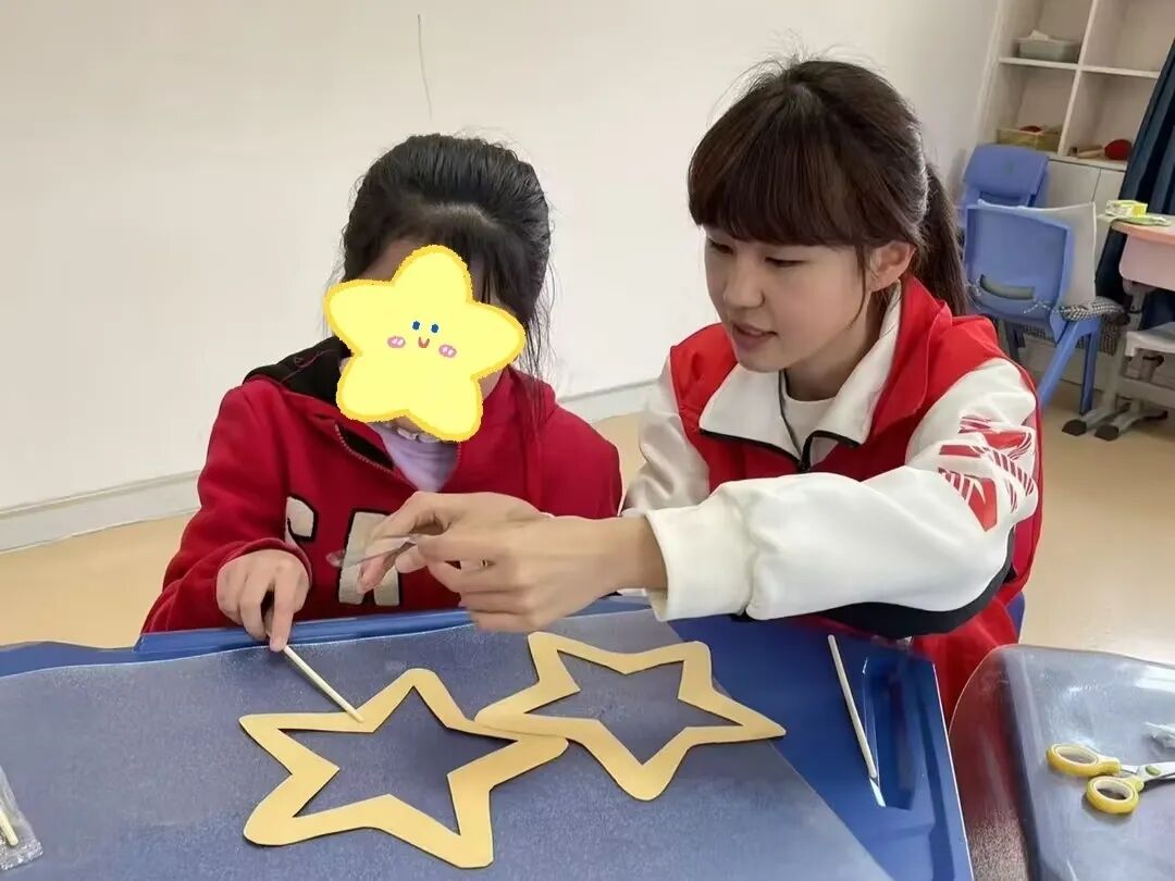 在志愿者的陪伴与支持下,孩子们认真制作星星棒,将奇思妙想与美好心愿融入其中。挥舞之间,点点星光在教室内流转闪烁,宛如漫天星光洒落,童真与温暖在现场静静流淌。